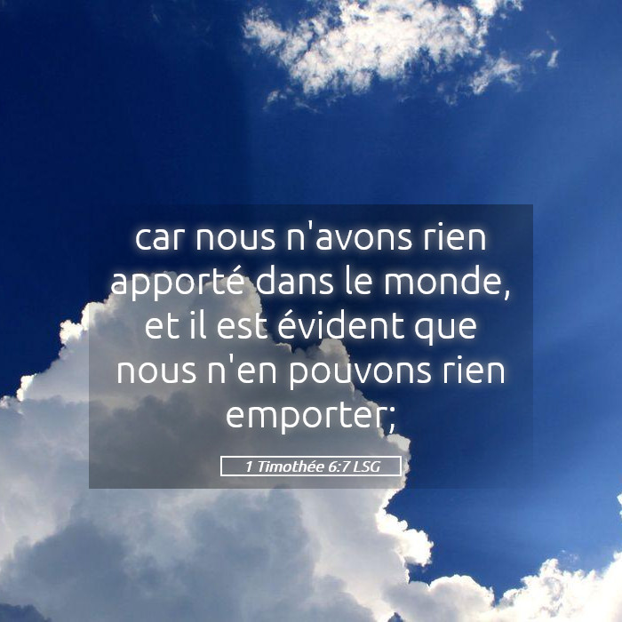 « Car nous n’avons rien apporté dans le monde, et il est évident que nous n’en pouvons rien emporter. »