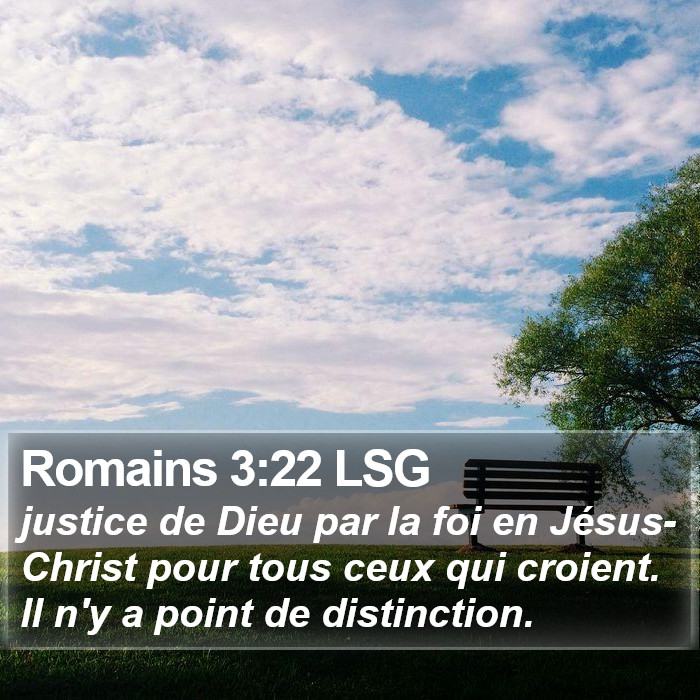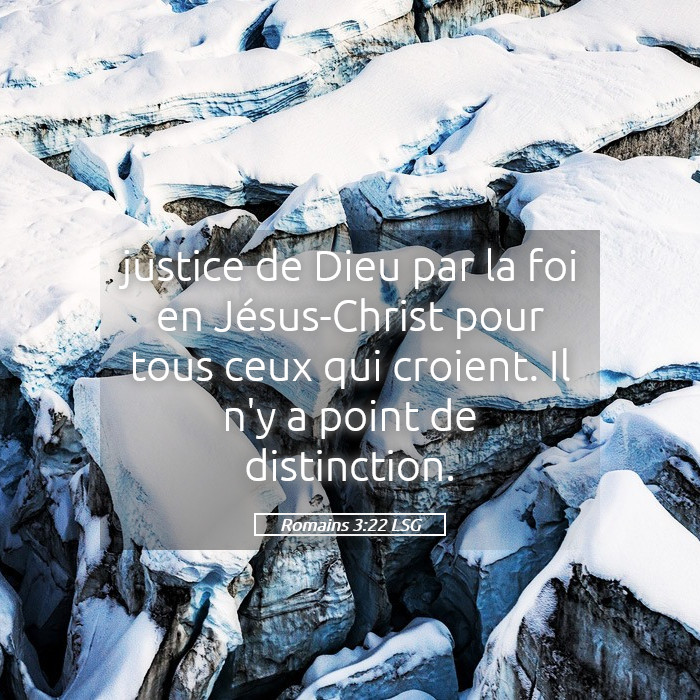 Romains 3:22 – « Justice de Dieu par la foi en Jésus-Christ pour tous ceux qui croient. Il n’y a point de distinction. »