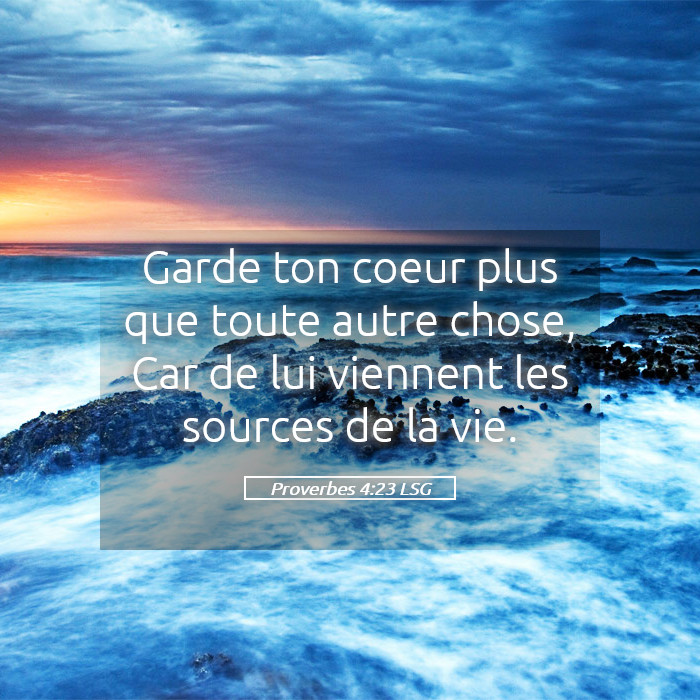 📖 Proverbes 4:23 - « Garde ton cœur plus que toute autre chose, Car de lui viennent les sources de la vie. »