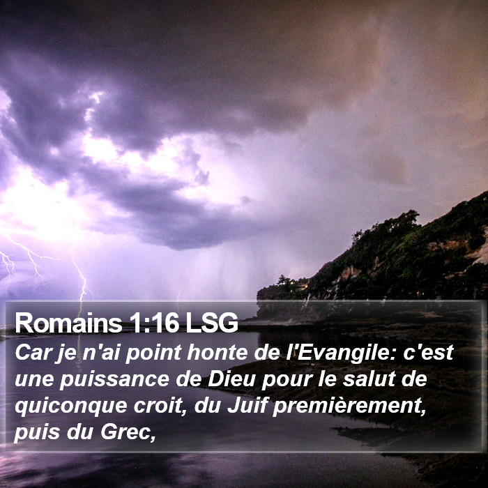 « Car je n'ai point honte de l'Évangile de Christ : c'est une puissance de Dieu pour le salut de quiconque croit, du Juif premièrement, puis du Grec. »