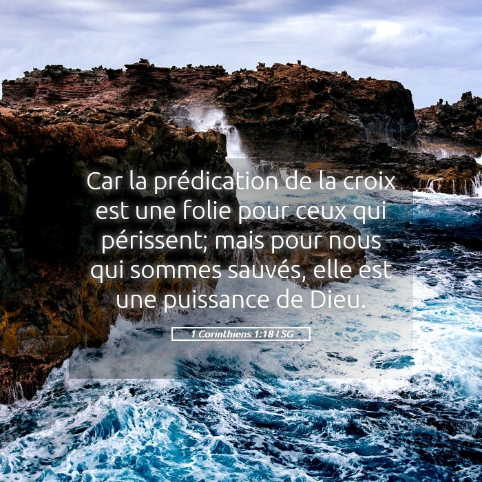 1 Corinthiens 1:18 - « Car la prédication de la croix est une folie pour ceux qui périssent ; mais pour nous qui sommes sauvés, elle est une puissance de Dieu. »