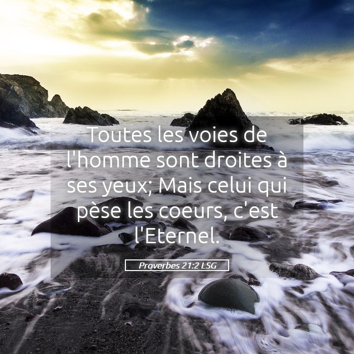 Proverbes 21:2 : « Toutes les voies de l’homme sont droites à ses yeux ; Mais c’est l’Éternel qui pèse les cœurs. »