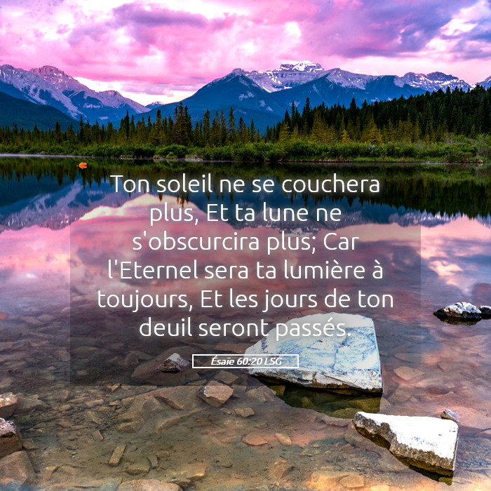 « Ton soleil ne se couchera plus, et ta lune ne s'obscurcira plus; car l'Éternel sera ta lumière à toujours, et les jours de ton deuil seront terminés. »