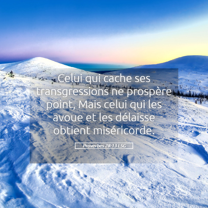 «Celui qui cache ses transgressions ne prospérera point ; mais celui qui les avoue et les délaisse obtient miséricorde. »