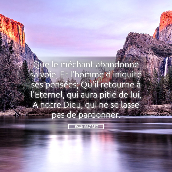 « Que le méchant abandonne sa voie, et l'homme d'iniquité ses pensées ; qu'il retourne à l'Éternel, qui aura pitié de lui, à notre Dieu, qui ne se lasse pas de pardonner. »