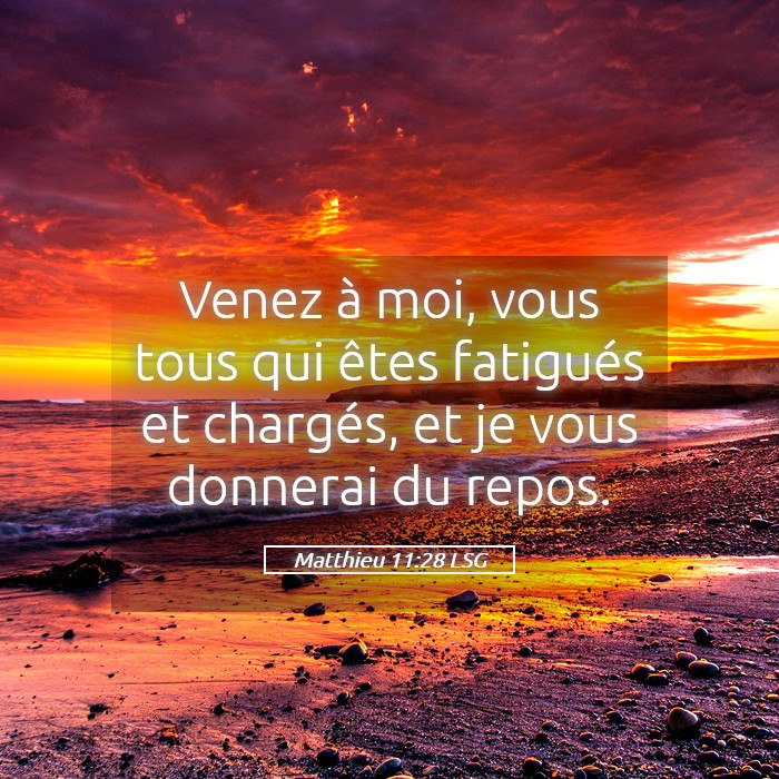 « Venez à moi, vous tous qui êtes fatigués et chargés, et je vous donnerai du repos. » (Matthieu 11:28)