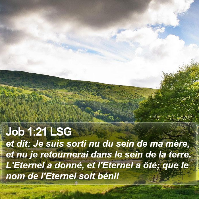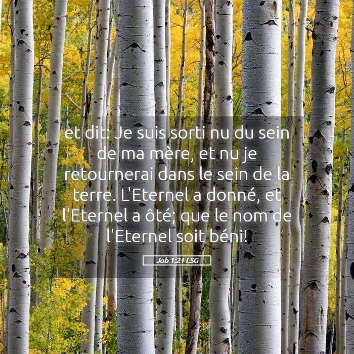 "Et il dit : Je suis sorti nu du sein de ma mère, et nu j’y retournerai. L’Éternel a donné, et l’Éternel a ôté ; que le nom de l’Éternel soit béni ."
